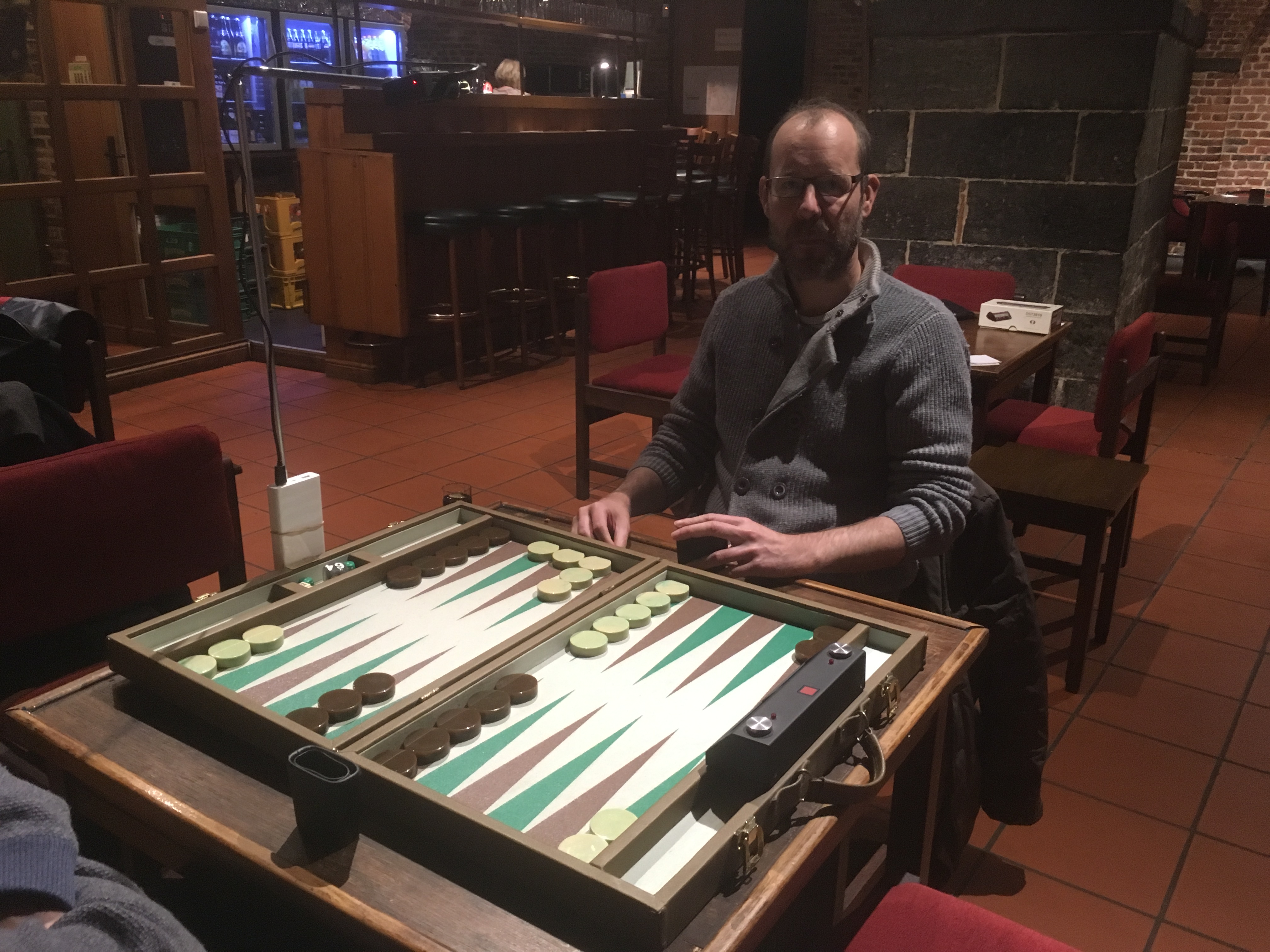 Also : watch the video below to get an impression of Tuesday evening backgammon action at the Sandeman Club in Gent. The video was made by Robin (‘Rain‘) Bilderbeek :
