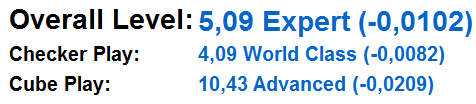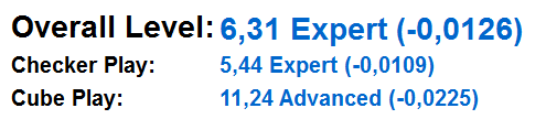 In he course of 3 weeks, Johan and me played a Midsummer Series. We both hoped to improve on our current BMS rating. Unfortunately, good intentions are not good enough in backgammon. Johan saw some excellent PRs dwindle as a result of time pressure, whereas I failed to dip below 5 because of some lackluster cube actions.
