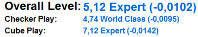 At the top of Belgian backgammon persistent efforts are being made to reach higher degrees of proficiency. Study, play, and analysis are key ingredients in that endeavour. To measure improvement, there is nothing like a challenging Master Series : a pre-designated series of longer matches, played live, recorded, transcribed, and mercilessly analysed and evaluated by the world’s absolute best player, the masterfully engineered robot : eXtremeGammon.