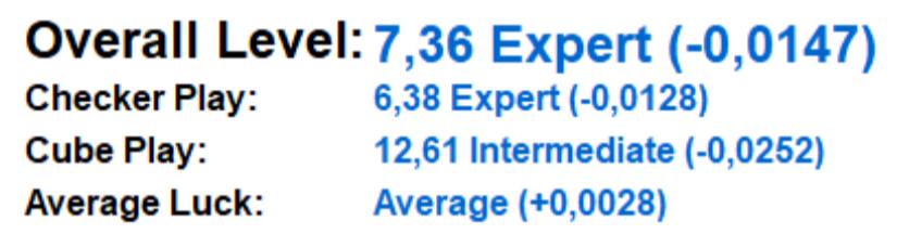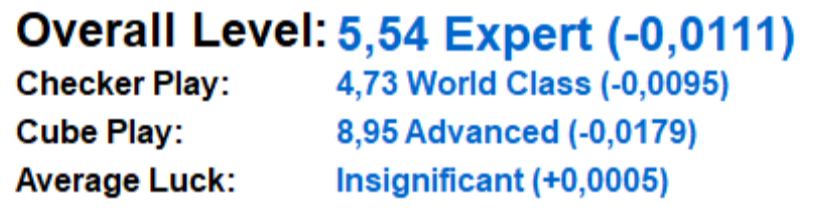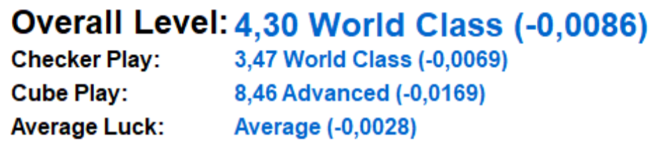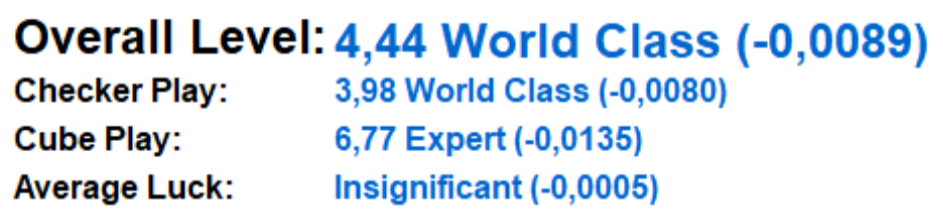 In a continued effort to improve their game, Geert Van der Stricht, Johan Huyck, Robin Bilderbeek and Michel Lamote played, recorded and transcribed ten 13-point matches. Over the past years it has become clear that PR’s achieved in Master Series of that length do not deviate much from the players’ actual playing strengths and thus provide a good indication of where they stand as far as intrinsic skill is concerned :