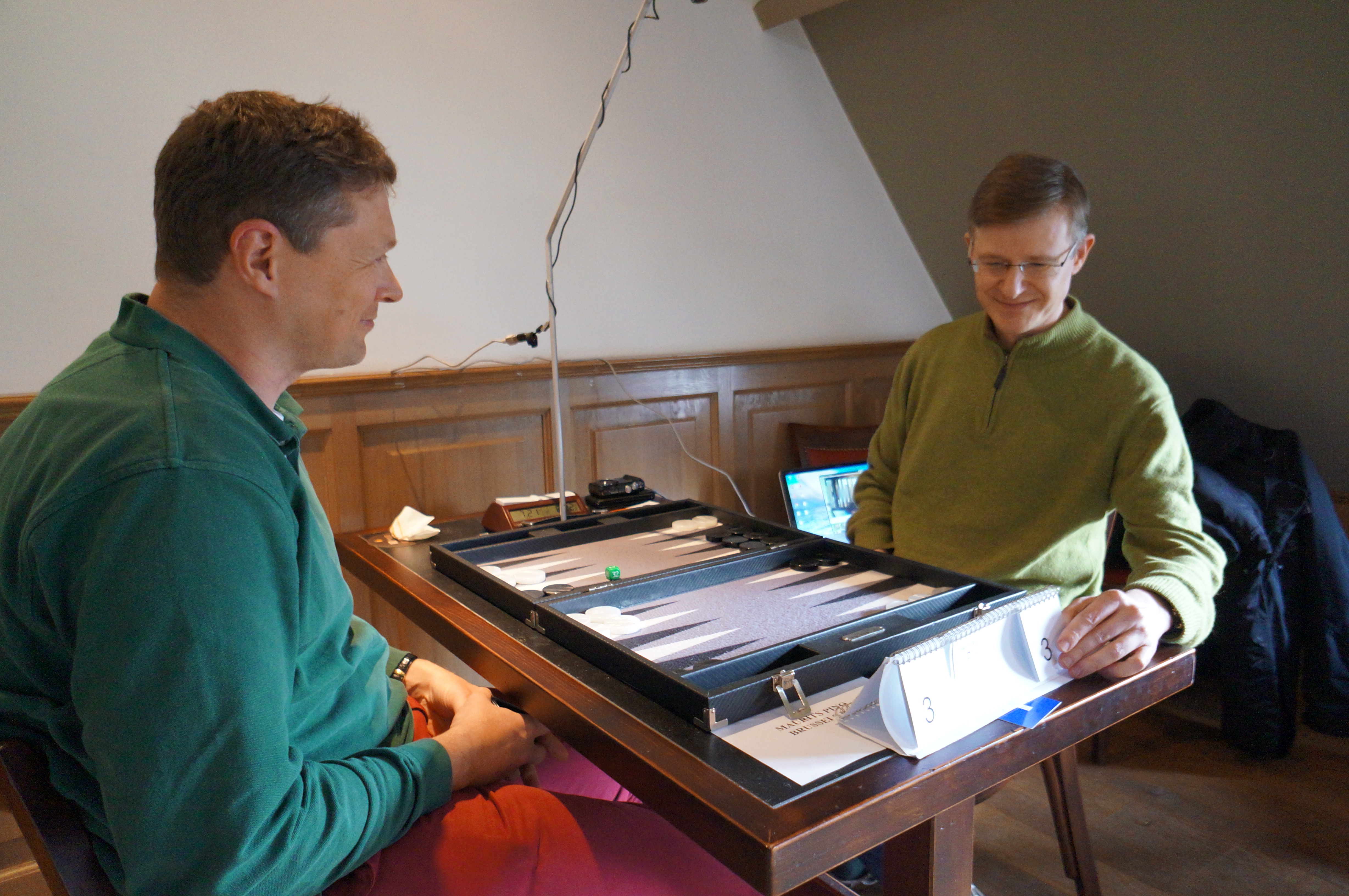 Maurits (left) and Zsolt (right) at 1st Brugge Backgammon Day (2015)