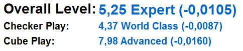As if this was not bad enough, this unforgivable time management blunder ruined an otherwise fine PR : after thirteen 13-pointers, I stood at 4,85, but match 14 proved one too many. A merciless 9,35 PR in this fate decider sadly turned my overall performance from laudable to mediocre :