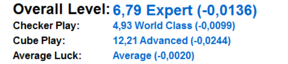 Over the past 6 weeks, Johan Huyck (Gent BC) and Paul Van Dijke (Brugge BC) played, recorded and transcribed six 15-point matches.  As the data show, both players performed slightly below par :