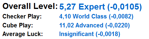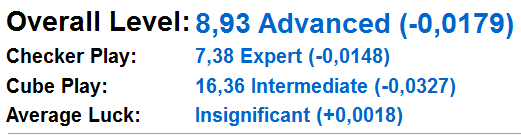 How significant are these data? Well, it is most likely that they are pretty reliable.  Since my official BMAB-grading is Master Class 2 (between 4,75 and 5,50 PR), it looks like my performance was average.    As for Guy, although the sample is on the small side (only 90 EP), it is pretty likely that his PR here is also average, which means somewhere in the ballpark of his true playing strength.  Is it a coincidence that Guy’s  PR on the BPR Rating Table (which reflects performances in predominantly shorter matches) is … 8,98 (50 EP)?  I do not think so.  Until further data become available, it is probably fair to assume that Guy’s playing strength is Advanced Class 3 (between 8,50 and 10,00 PR).  It is now up to Guy to prove that this provisionary grading is off the mark.  He can do so only by submitting more transcribed matches to BMS (by playing a MS or a BPR cluster) and, most importantly, by … playing better.