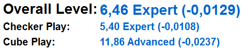 Paul routinely plays at Expert level, but appears to have missed an opportunity here to make a splash with a 5+ (or better) PR. Of course, in a MS1 series, players need to play solidly 6 matches in a row, which is quite demanding. With this result, Paul makes his entry in the BMS Grading Table and narrowly finds a M3 grading. He is thereby the 5th player in the country to post a Master grading. This grading is still provisionary, however,  since Paul has not reached the required 150 EP target.