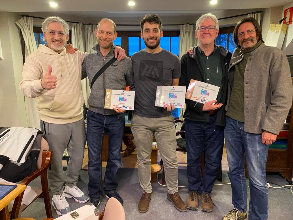 The 4 Cubes 2023 final team from Brussels proudly showing the 4 trophy after their victory in the Sandeman in Ghent: Kristoffer, Ithzak, Paulus, Guy and Paul. (Photo GVdS) We invite you to join us for the presentation of the 4 Cubes at the weekly Brussels evening, hosted at the ‘Black Beard’ (Lakensestraat 166 Rue de Laeken, 1000 Brussels) on Thursday, November 2nd, at approximately 6:15 PM. We look forward to seeing you there.