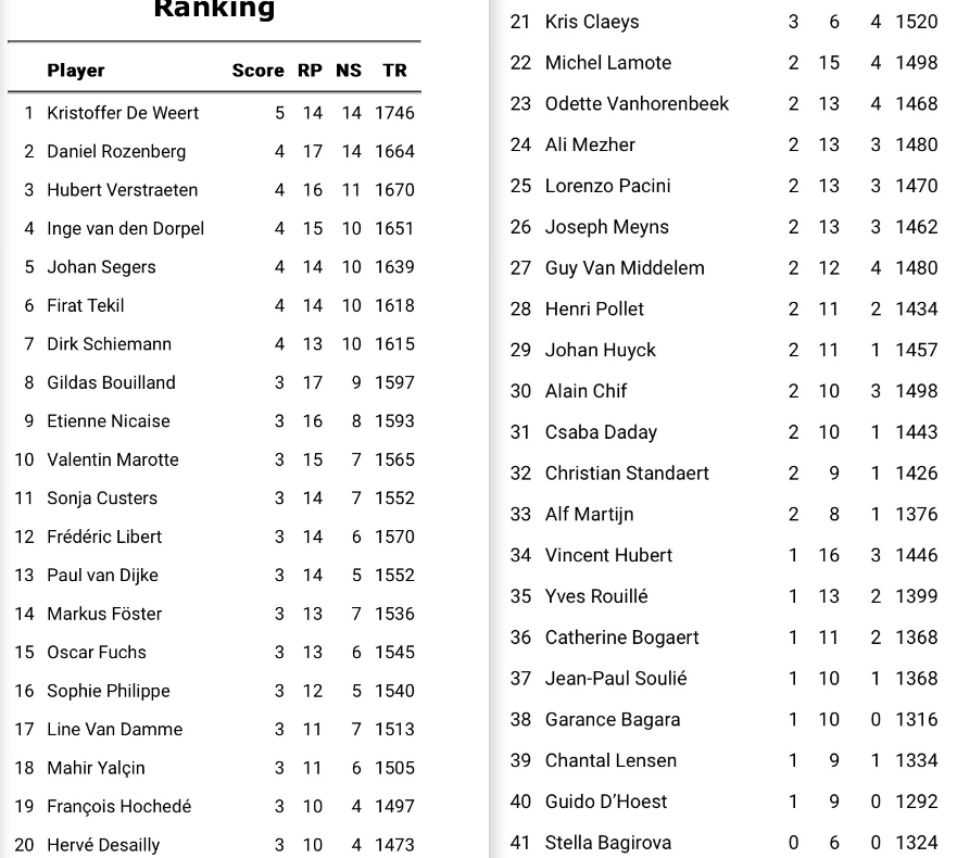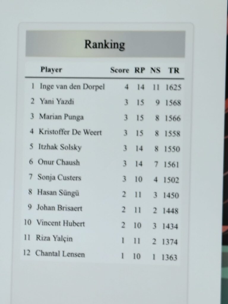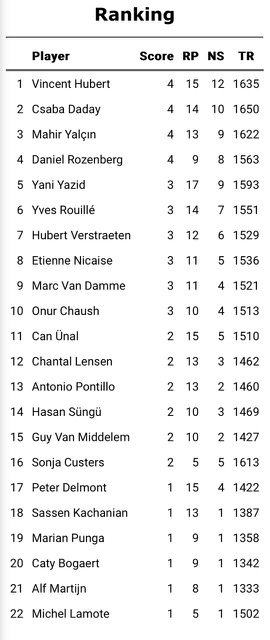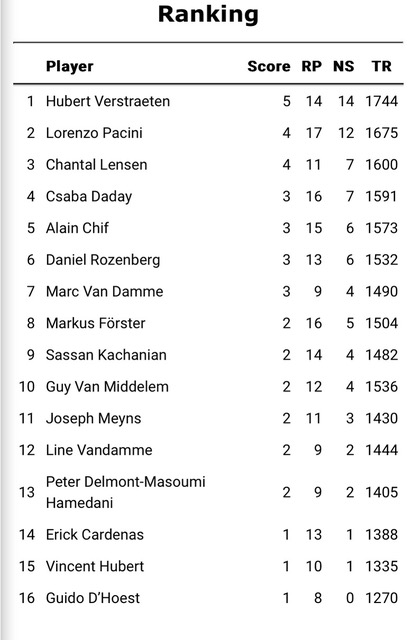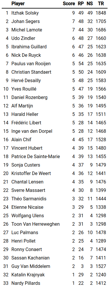 At this moment, both Johan Segers and Hubert Vertsraeten decided to leave the tournament early with a score of 1 point.