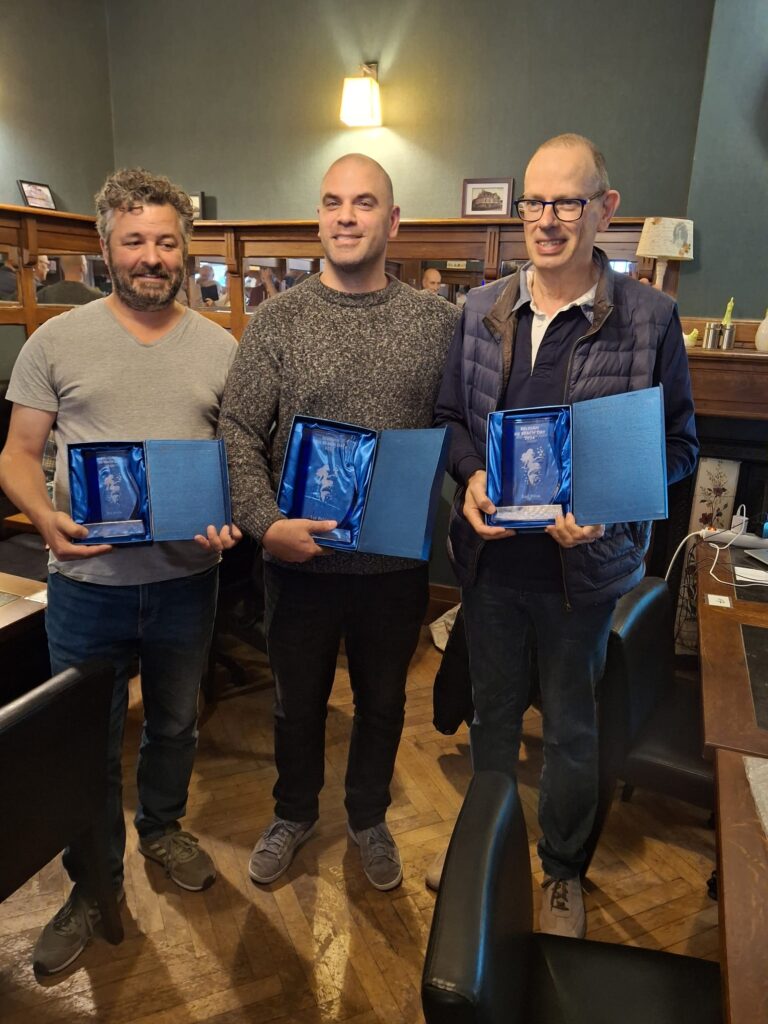 Bert, the highest ranked player in the masters category with 5 points, took the masters trophy. Guy, Otto and Michel shared 2nd place with 4 points.