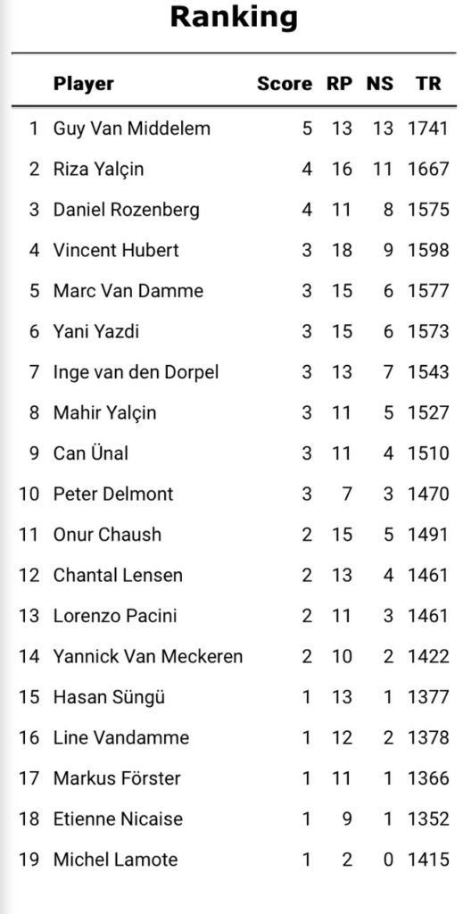 Firat Tekil with 5 points, Csaba Daday, Lorenzo, Vincent Hubert and Bert with 4.