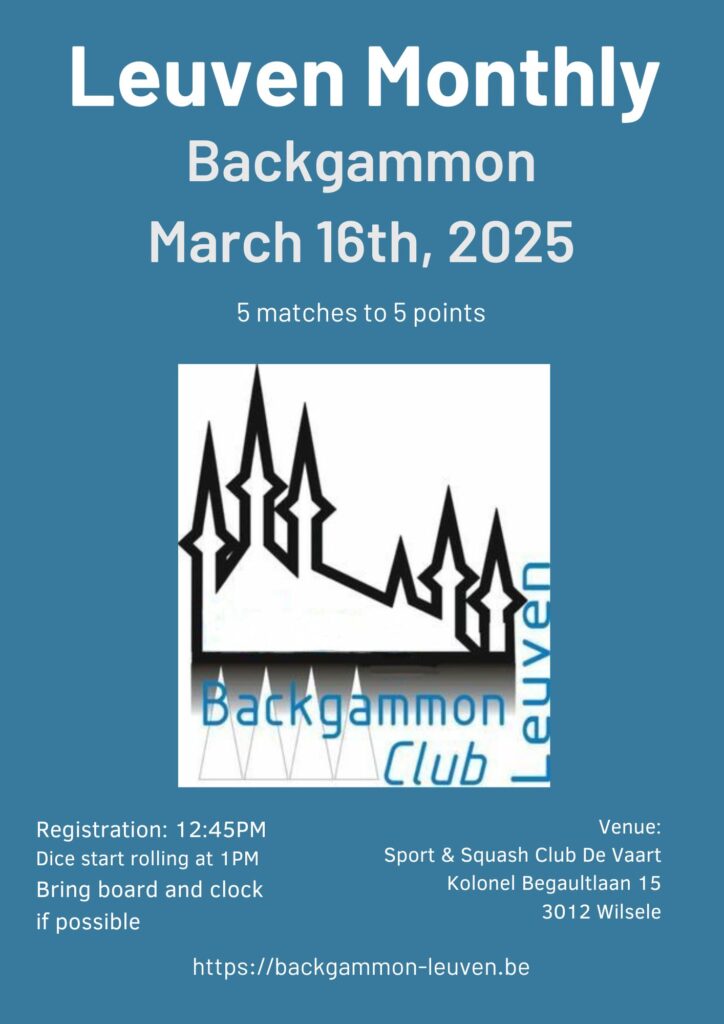 - Gent Backgammon Open XVII on Sunday, February 11, 2024
