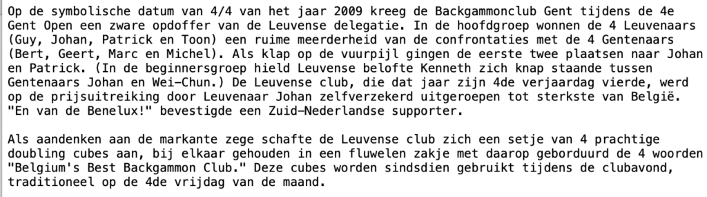 Those who were there, will recall memories when reading this piece of Belgian Backgammon history.