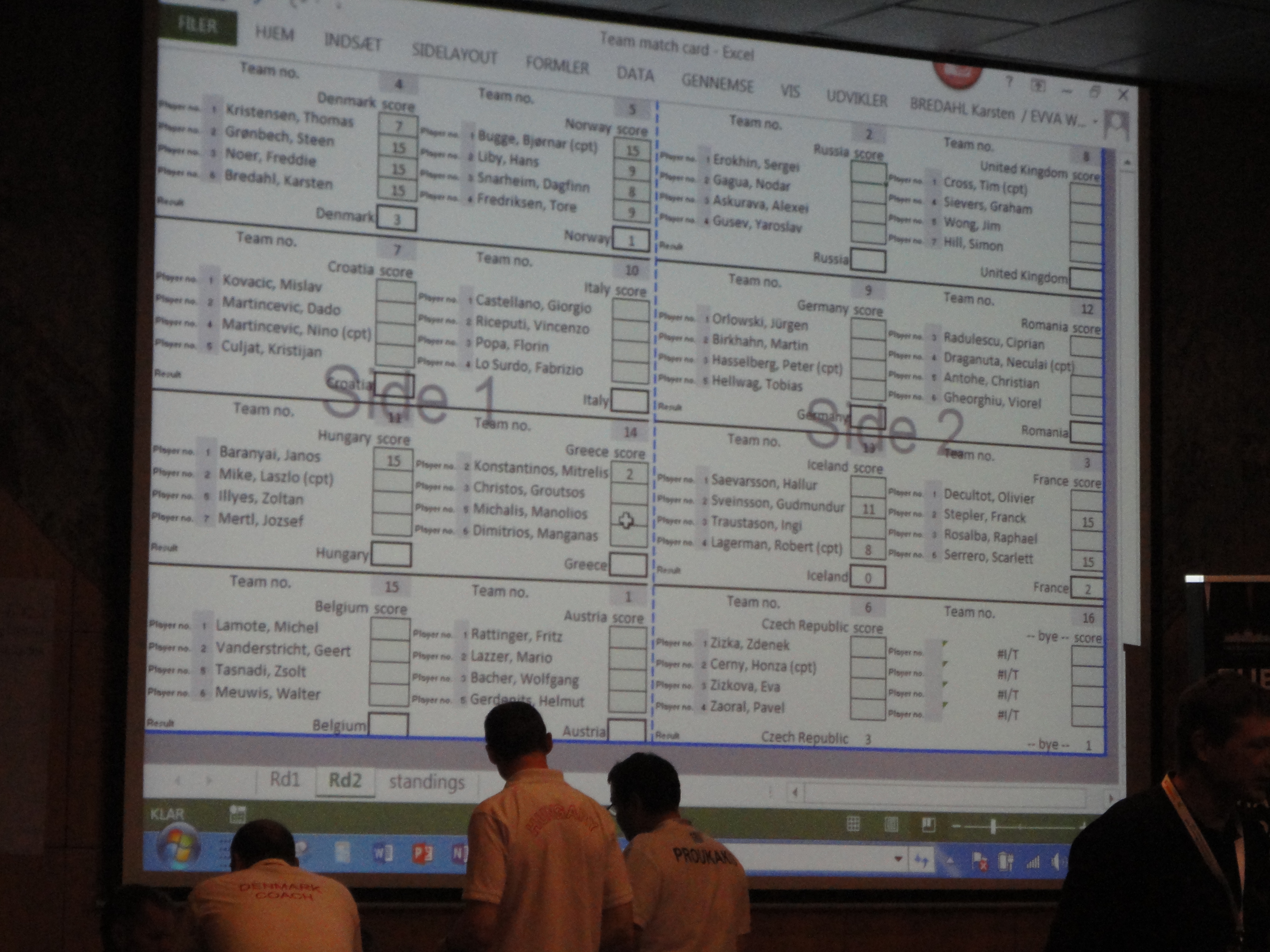 The team tournament started half an hour later as scheduled. Again, I will refrain from any comments on the openings procedures. At the moment as we speak, our president Guy is participating at the general assembly of the European Federation where these matters will be discussed. He surely will inform you later about everything.