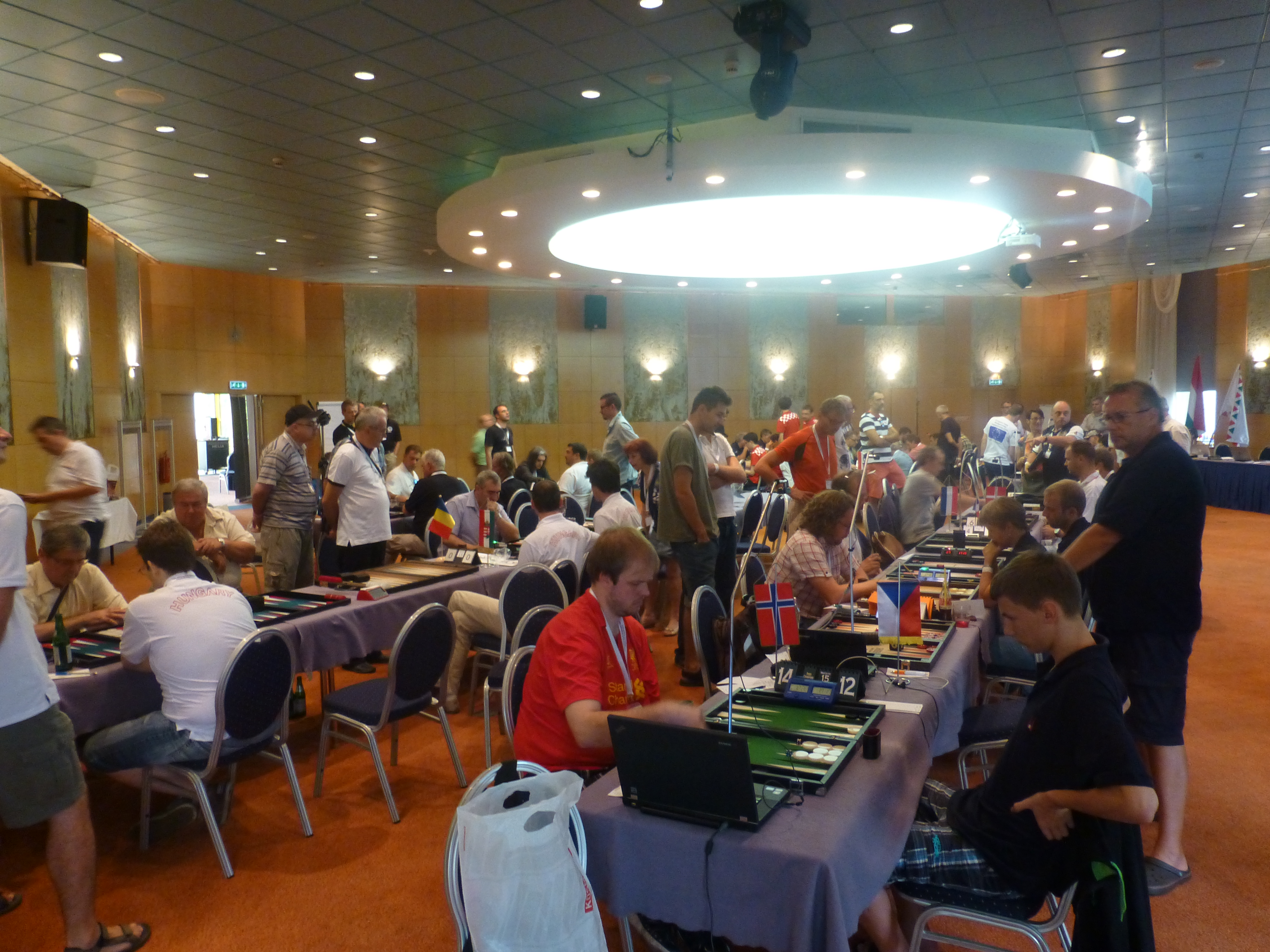 The European Championship was preceded by the Budapest Open. The masters division was played in the Panorama room. The shutters had to be closed because of the scorching sun; outside temperatures reached 35°C.