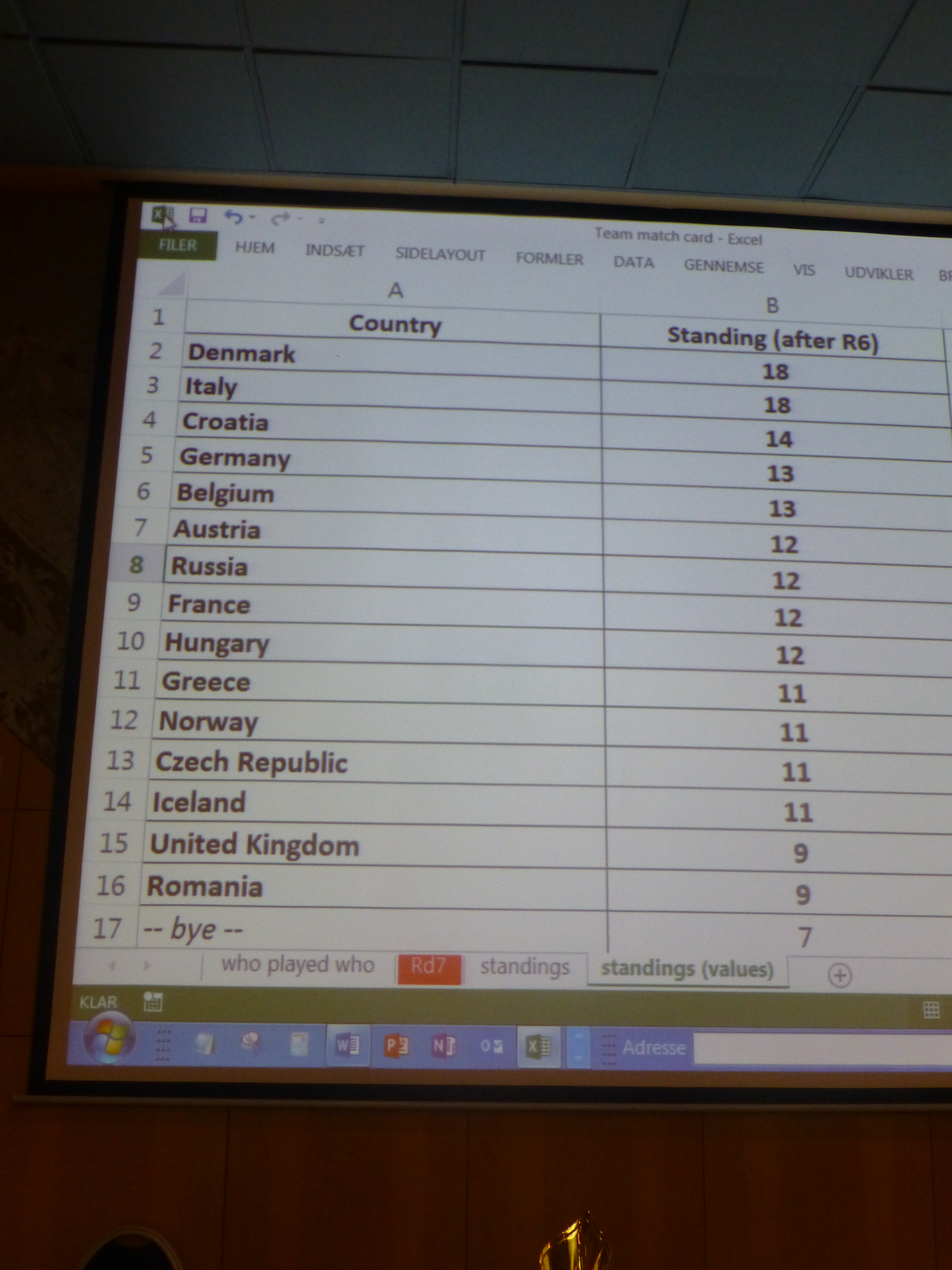 Belgium lost 1:3 to Denmark (Walter Meuwis won his match) but, before the last round, still had a realistic chance to make the final four.